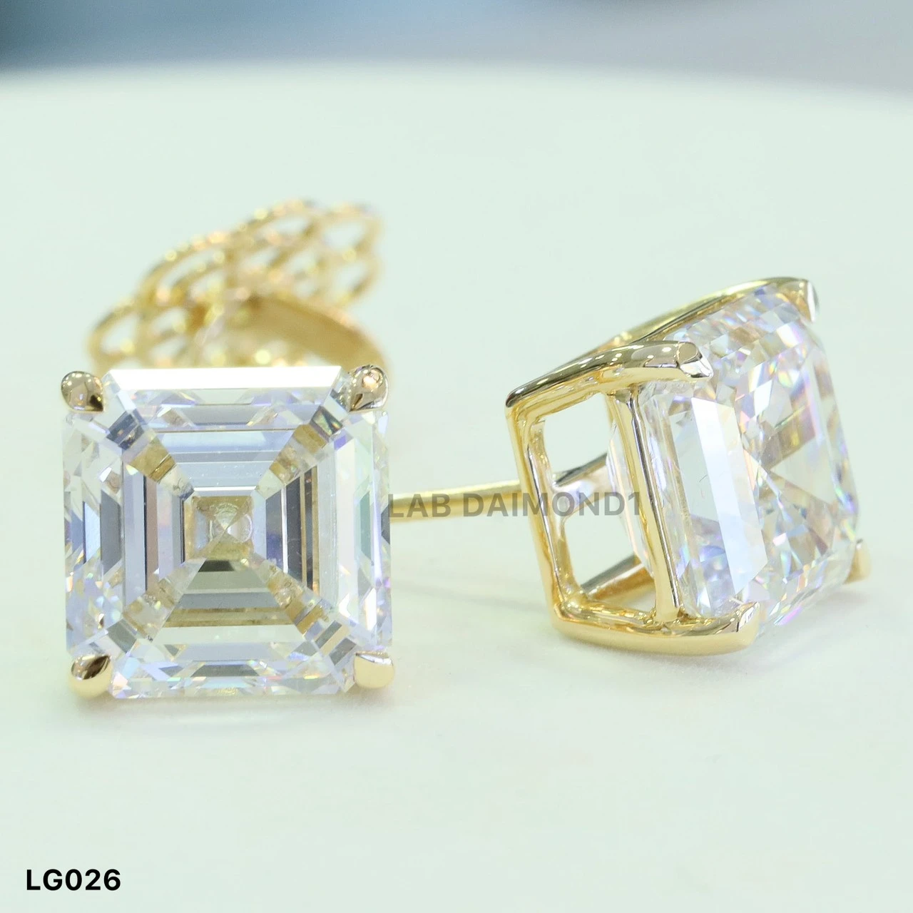 ต่างหูเพชรเม็ดเดี่ยว Asscher Shape LG026